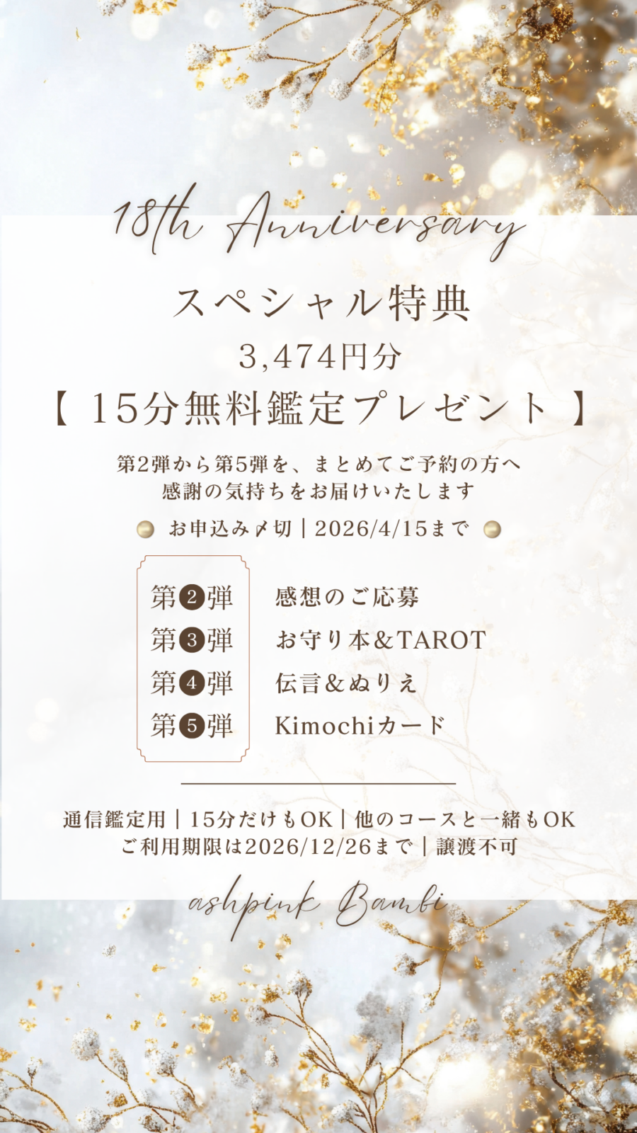 18周年 ご挨拶 堀江 真代 アッシュピンクバンビ ashpinkbambi